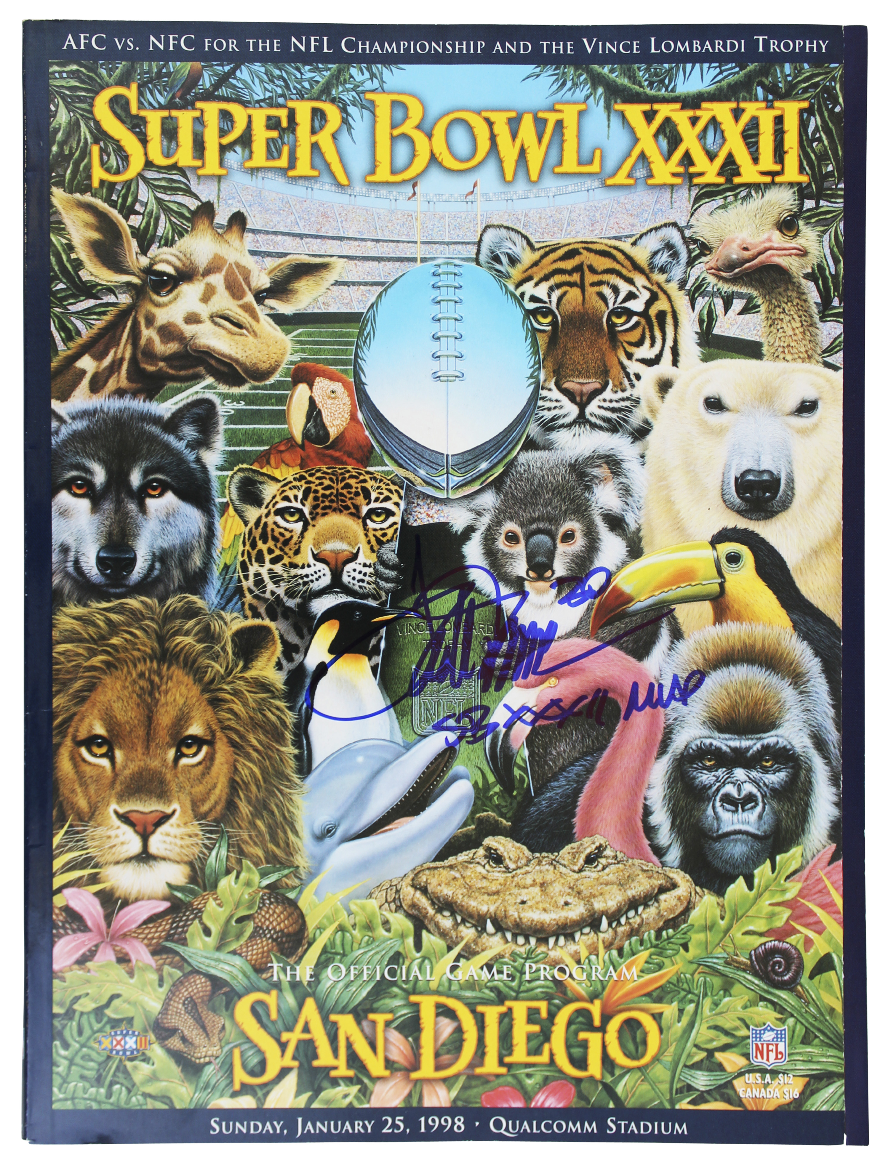 Broncos Terrell Davis "SB XXXII MVP" Signed SB XXXII Program BAS Wit #W103720
