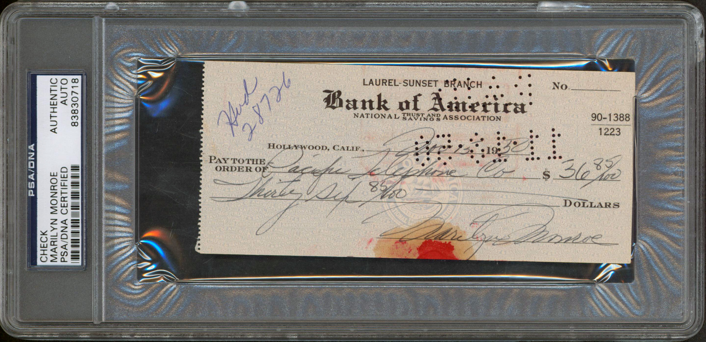 Marilyn Monroe Authentic Signed Check Dated November 15, 1950 PSA/DNA Slabbed