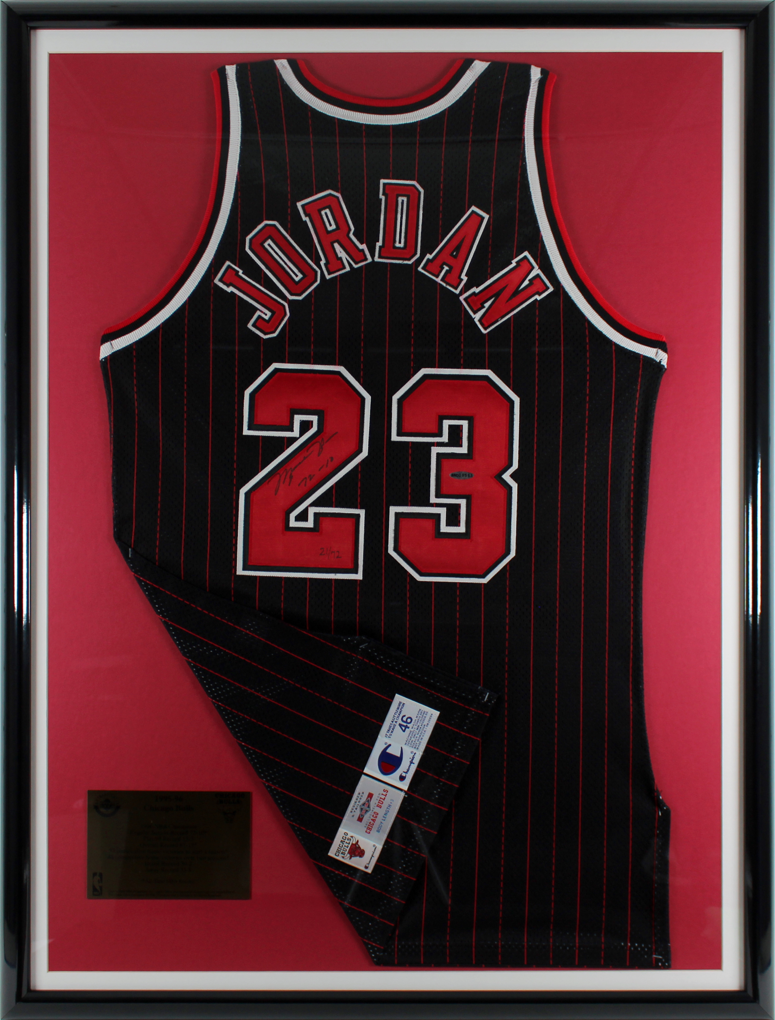 Bulls Michael Jordan "72-10" Signed Black Champion Framed Jersey UDA #BAD00565