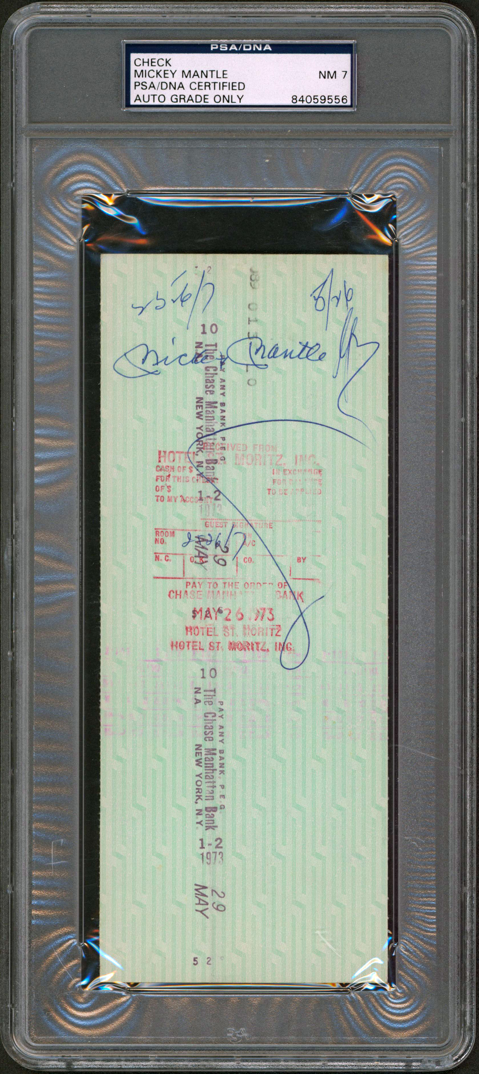 Yankees Mickey Mantle Authentic Signed 3.5x8.5 1973 Payroll Check PSA Slabbed