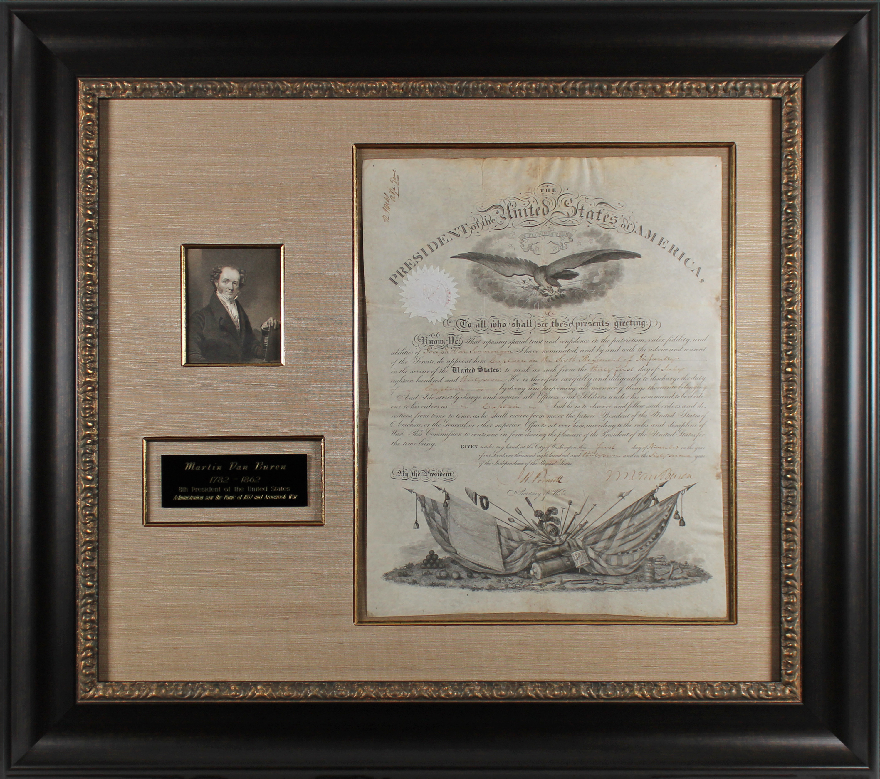 Martin Van Buren Signed & Framed 13.375x17.5 1837 Military Appointment BAS