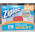 Ziploc Double Zipper Heavy Duty Freezer Quart Bags, 216 Bags