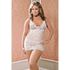 Icollection Lingerie, 2 Piece Dot Mesh & Lace Halter Chemise & G-String Set, White One Size Queen