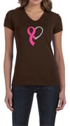 Breast Cancer Awareness Ladies Shirt Ribbon Heart V-neck Tee T-Shirt