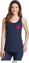 Breast Cancer Awareness Pink Ribbon Pin Bottom Print Ladies Tank Top