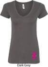 Breast Cancer Pink Ribbon Pin Bottom Print Ladies V-Neck Shirt
