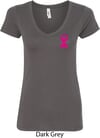 Breast Cancer Pink Ribbon Pin Pocket Print Ladies V-Neck Shirt