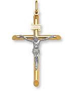 14K Solid Two-Tone Gold Crucifix Pendant for Men