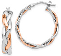 14K Rose and White Gold Braided Hoop Earrings