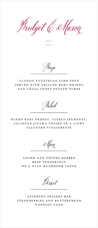 Custom Menus - Deep Red - Just Glamorous
