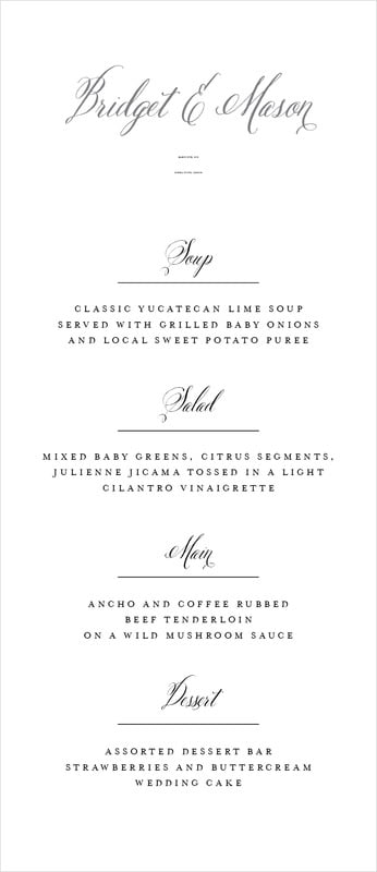 Custom Menus - Charcoal - Just Glamorous