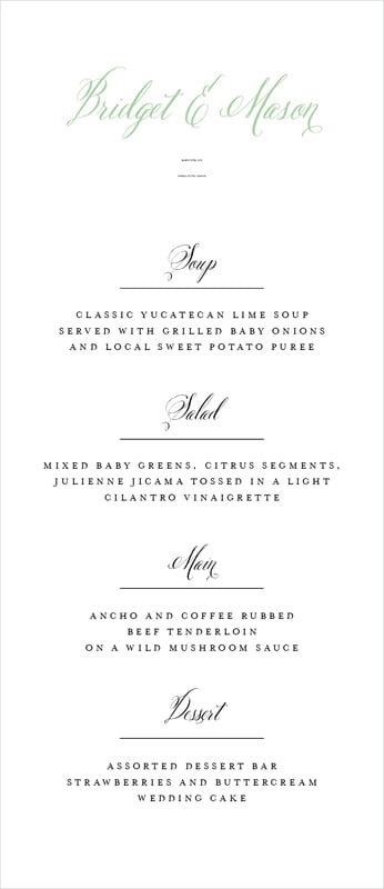Custom Menus - Mint - Scallop Edge