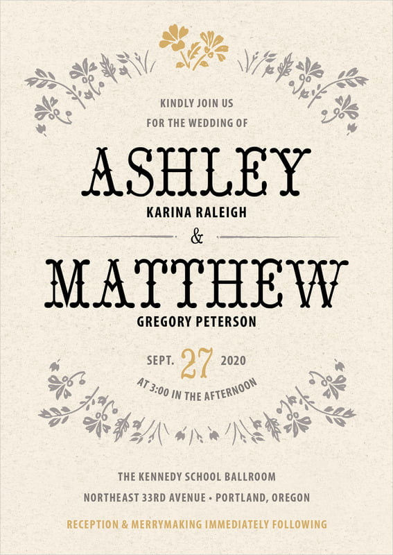 Custom Invitations - Gold - Spring Meadow
