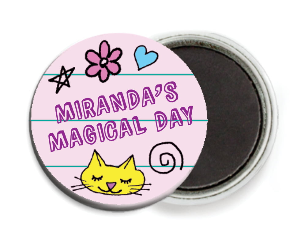 Custom Button Magnets - Purple & Pale Pink - Doodle