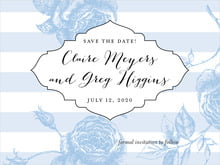 Custom Save-The-Date Cards - Blue - Striped Rose
