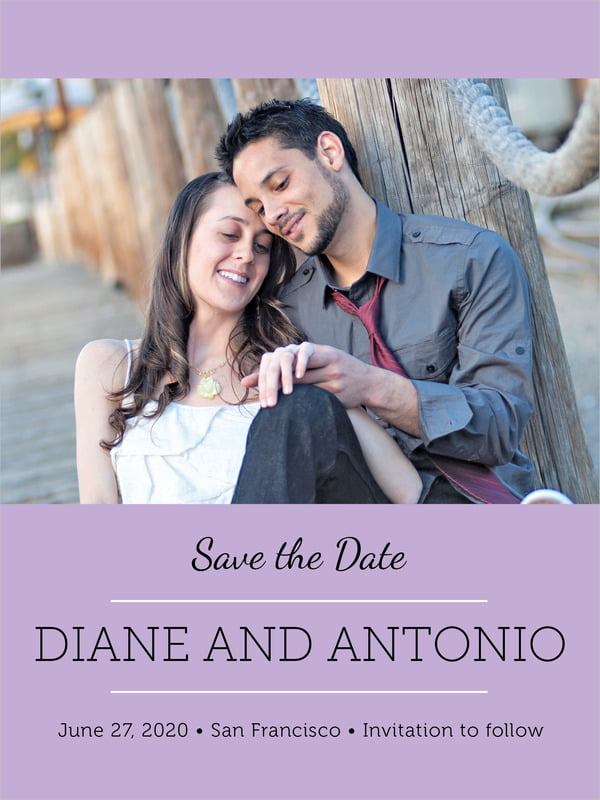 Custom Tall Save The Date Cards - Lilac - Modern Museo