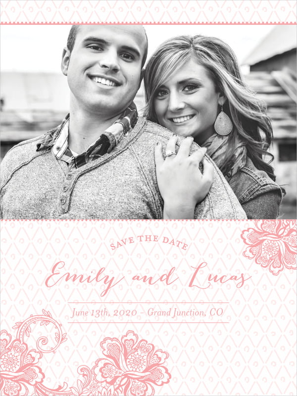 Custom Tall Save The Date Cards - Pink - Lucky In Lace