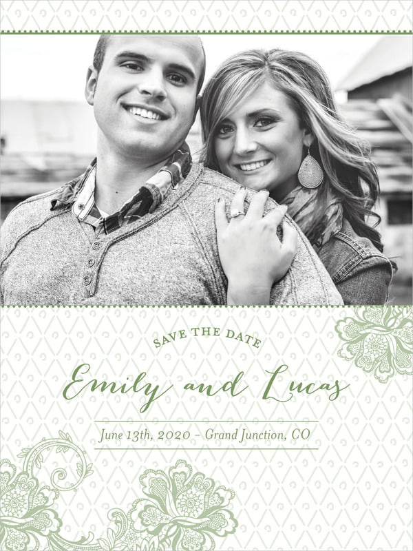 Custom Tall Save The Date Cards - Sage - Lucky In Lace