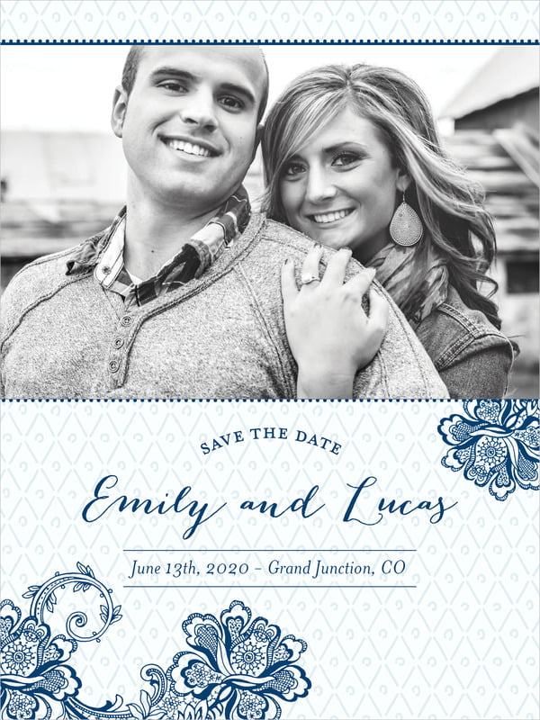 Custom Tall Save The Date Cards - Blue - Lucky In Lace