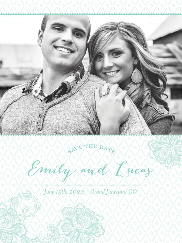 Custom Tall Save The Date Cards - Sea Glass - Lucky In Lace