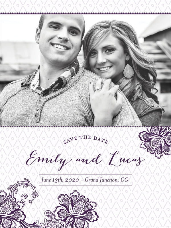 Custom Tall Save The Date Cards - Purple - Lucky In Lace