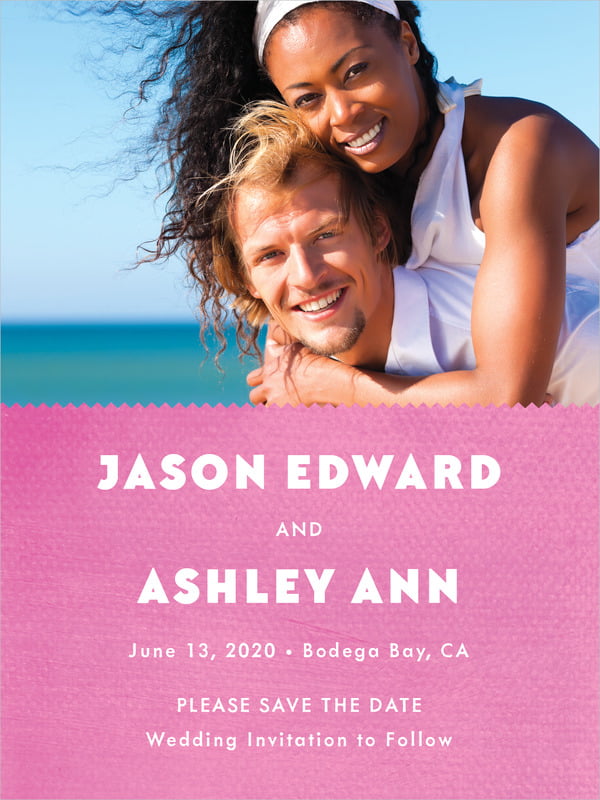 Custom Tall Save The Date Cards - Bright Pink - Chevron Edge
