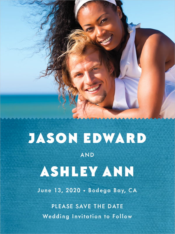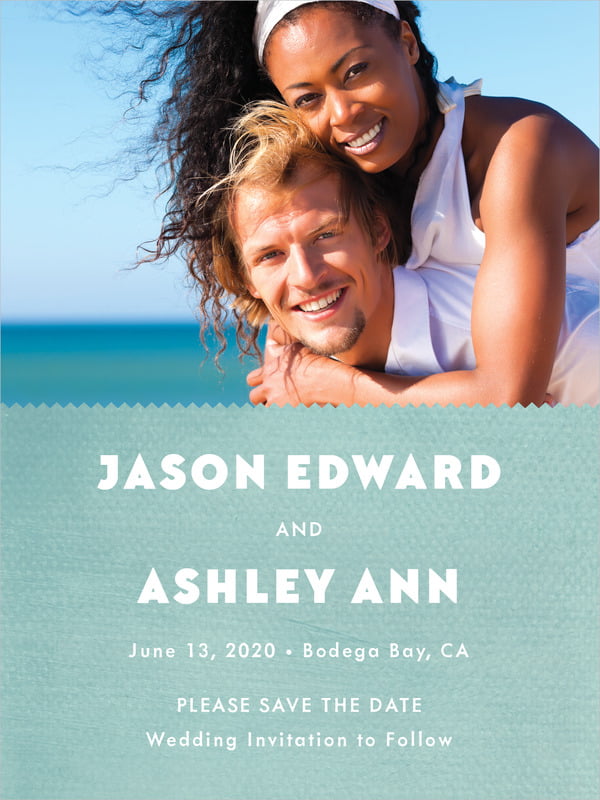 Custom Tall Save The Date Cards - Turquoise - Scallop Edge