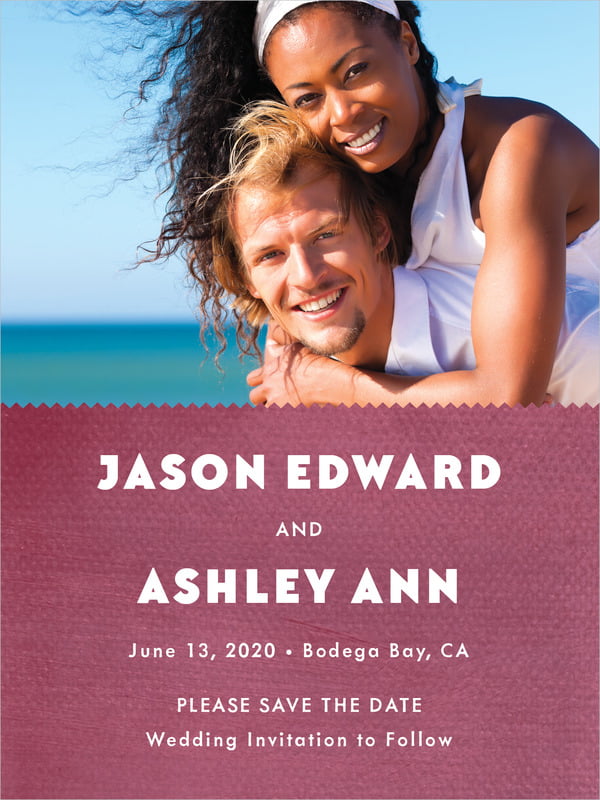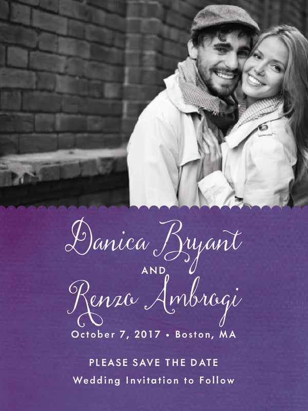 Custom Tall Save The Date Cards - Plum - Scallop Edge
