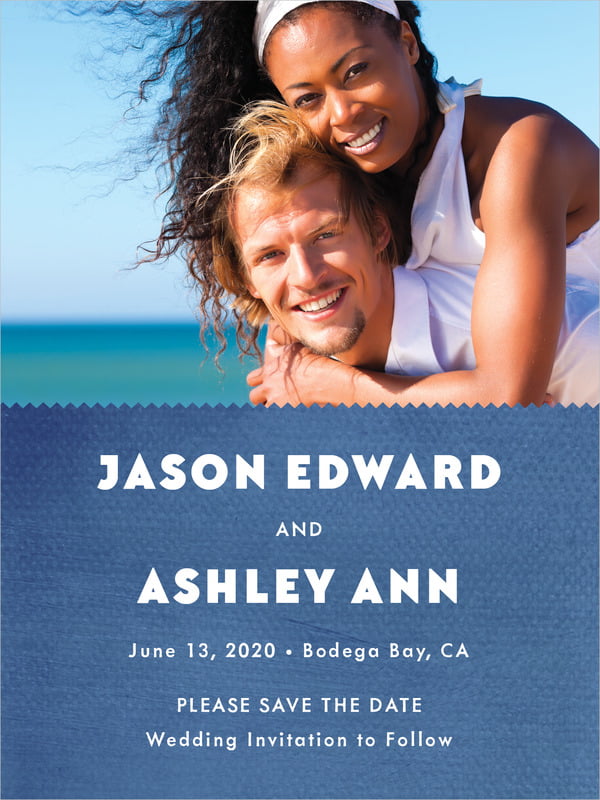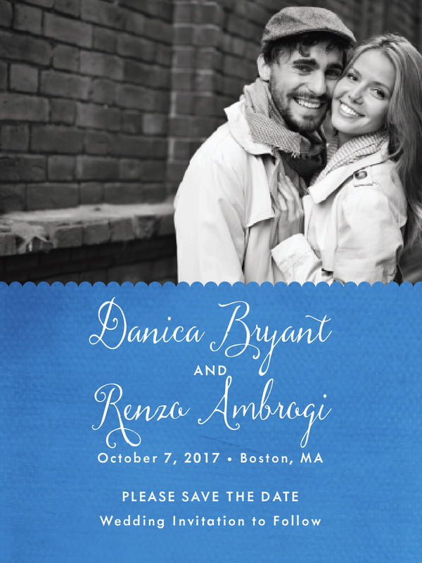 Custom Tall Save The Date Cards - Blue - Scallop Edge