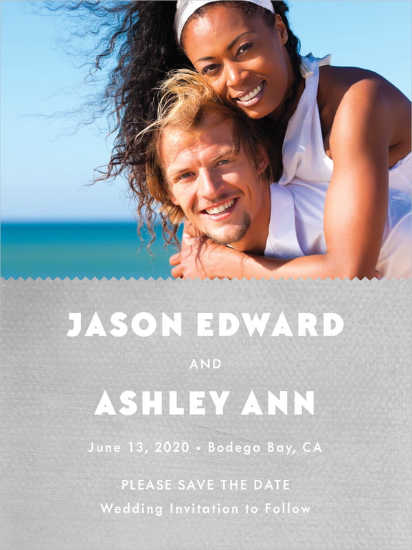 Custom Tall Save The Date Cards - Stone - Chevron Edge