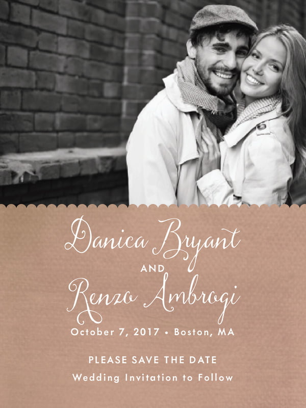 Custom Tall Save The Date Cards - Mocha - Scallop Edge