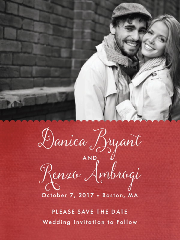 Custom Tall Save The Date Cards - Deep Red - Scallop Edge