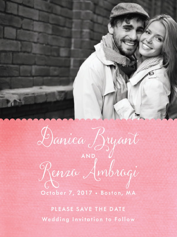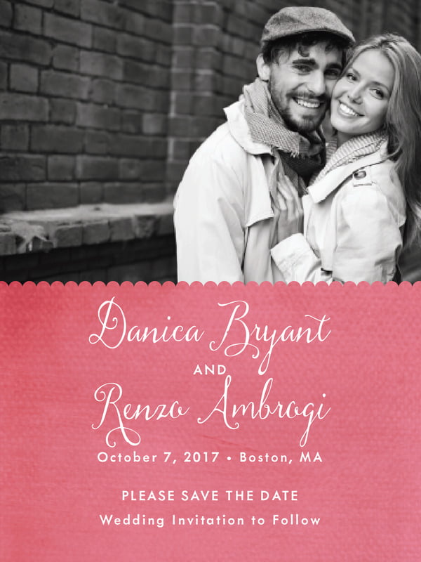 Custom Tall Save The Date Cards - Deep Coral - Scallop Edge