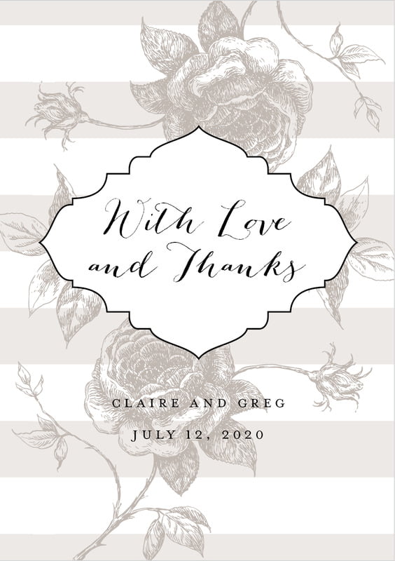 Custom Tall Folding Cards - Warm Grey - Striped Rose