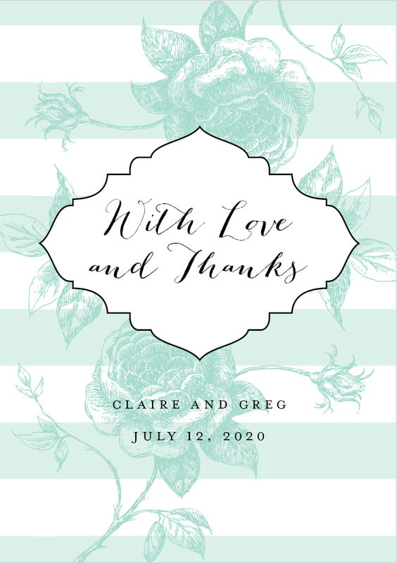 Custom Tall Folding Cards - Sea Glass - Striped Rose