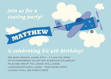 Party Invitations - Blue - Airplane