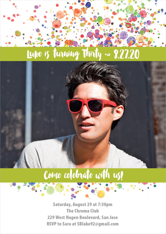 Party Invitations - Lime - Watercolor Droplets