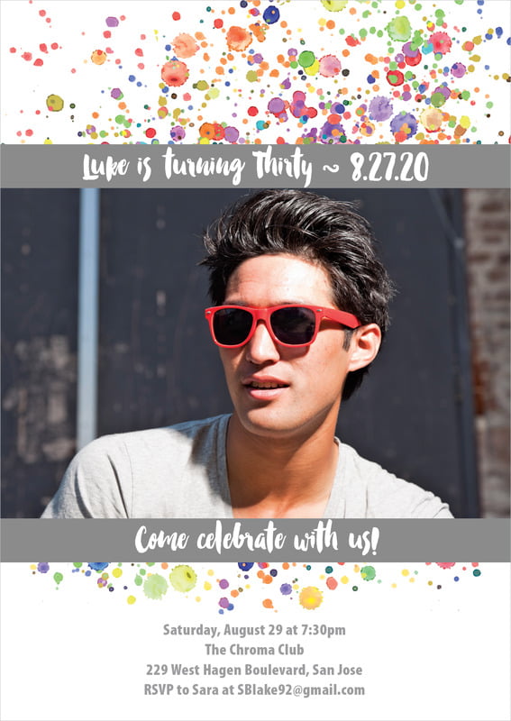 Party Invitations - Charcoal - Watercolor Droplets