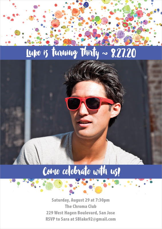 Party Invitations - Blue - Watercolor Droplets