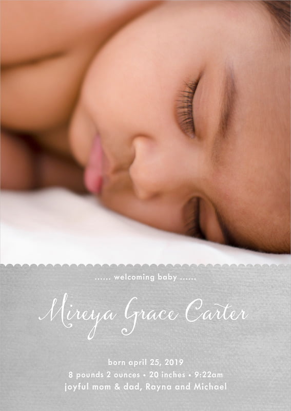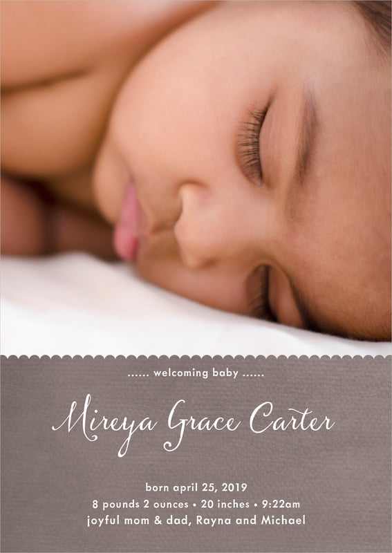 Baby Announcements - Stone - Scallop Edge