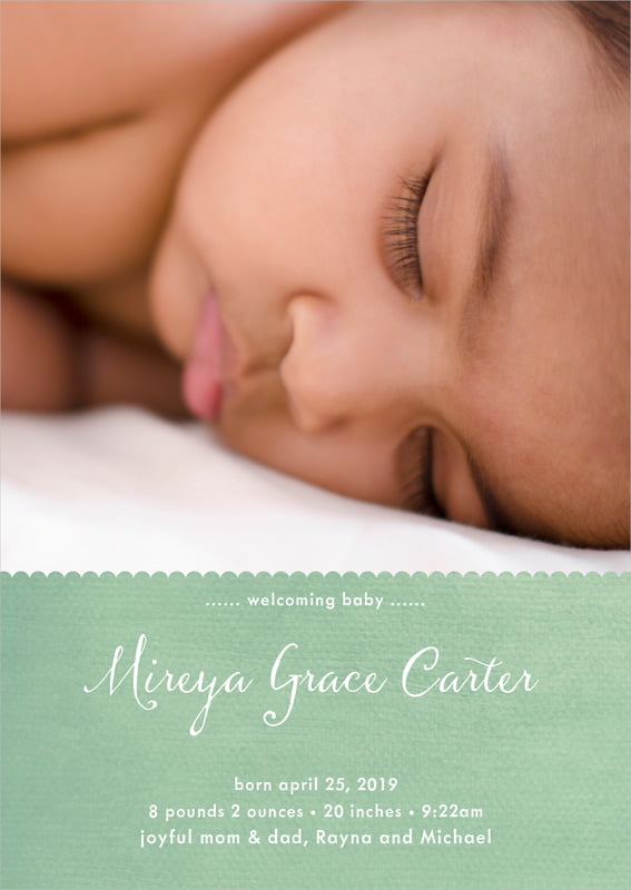 Baby Announcements - Mint - Scallop Edge