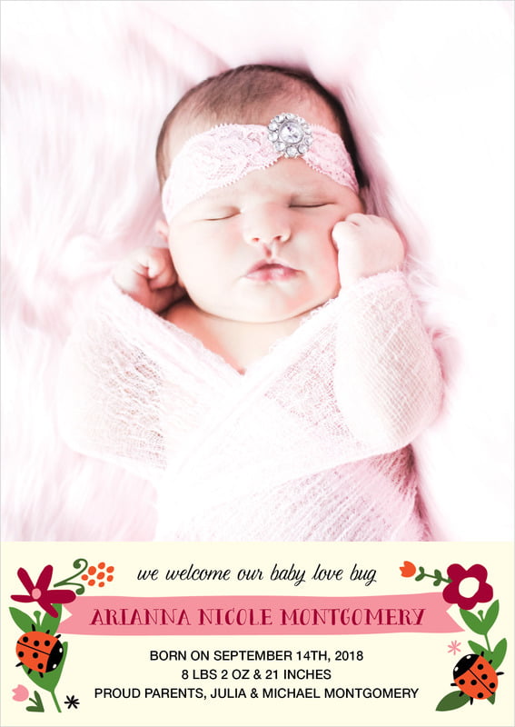 Baby Announcements - Pink - Lady Bug