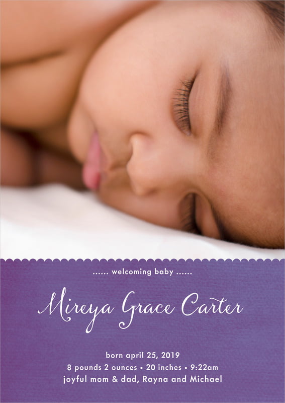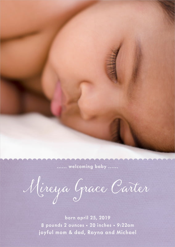 Baby Announcements - Lilac - Scallop Edge