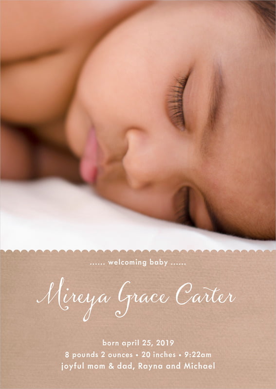 Baby Announcements - Mocha - Scallop Edge