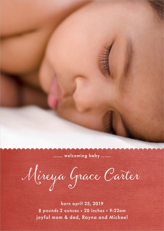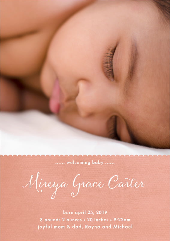 Baby Announcements - Deep Coral - Scallop Edge
