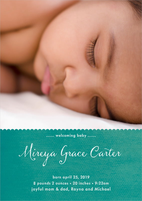 Baby Announcements - Turquoise - Scallop Edge