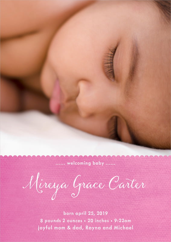 Baby Announcements - Bright Pink - Scallop Edge
