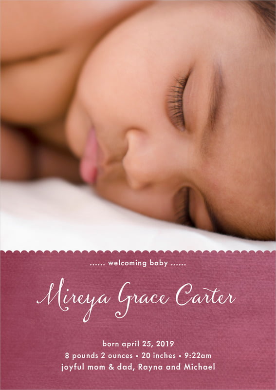 Baby Announcements - Plum - Scallop Edge