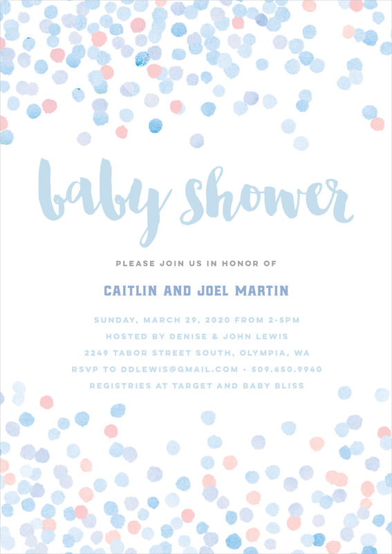 Baby Shower Invitations - Rose Quartz/Serenity - Watercolor Confetti