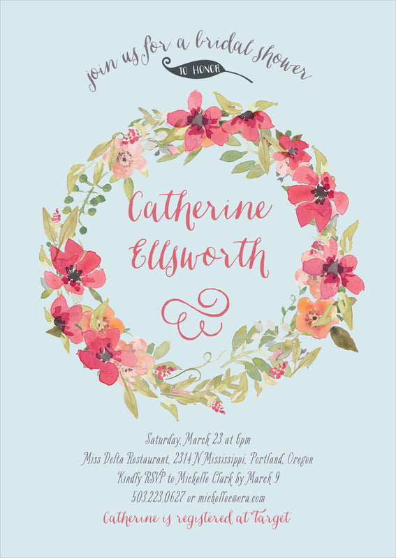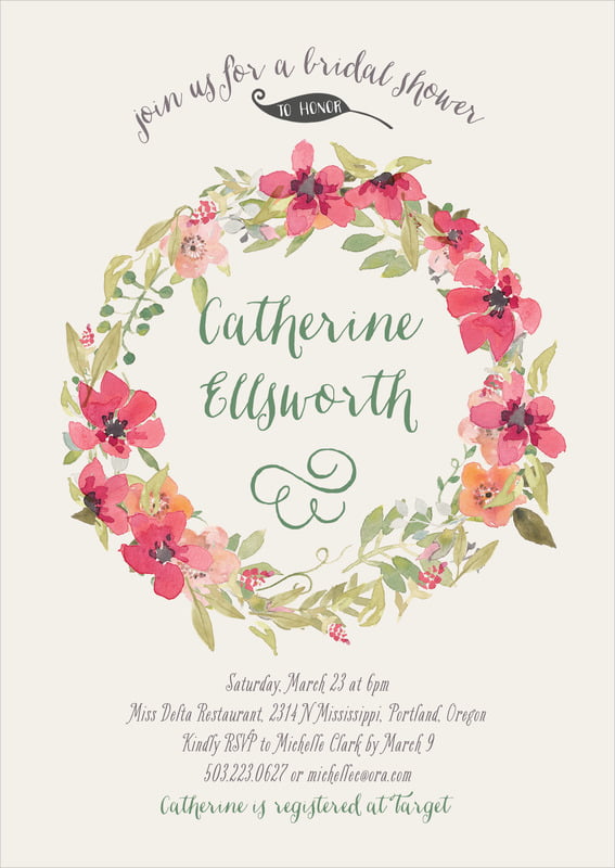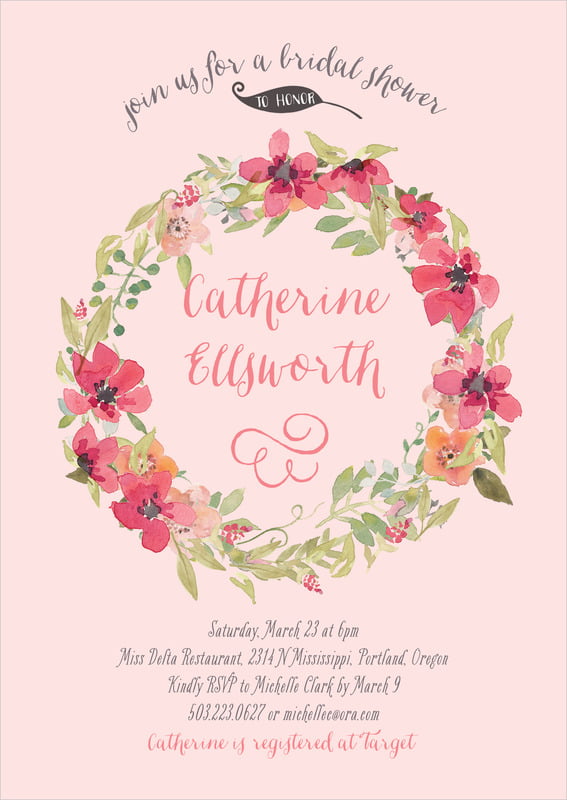 Baby Shower Invitations - Grapefruit - Watercolor Wreath